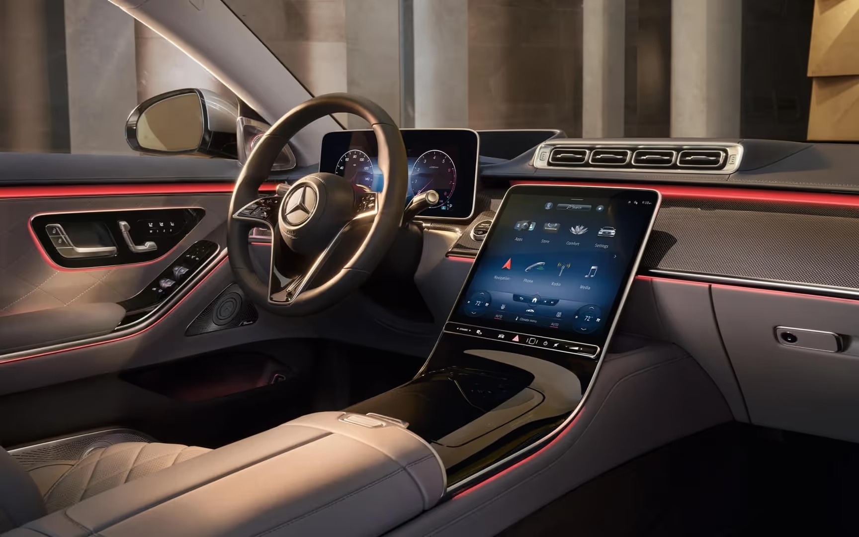 - MBUX Adaptive Seat Adjustment: Continuously adjusts seat cushion and backrest for reduced muscle fatigue and enhanced spinal well-being.